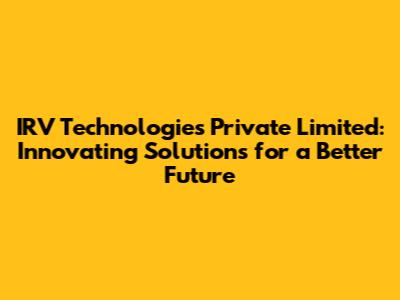 IRV Technologies: Innovating Solutions For A Better Future