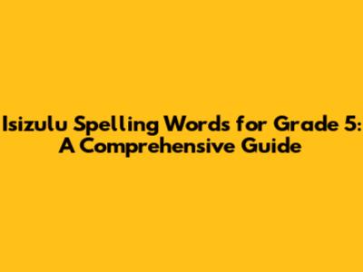 Isizulu Spelling Words For Grade 5: A Comprehensive Guide