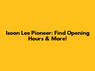 Isoon Lee Pioneer: Find Opening Hours & More!