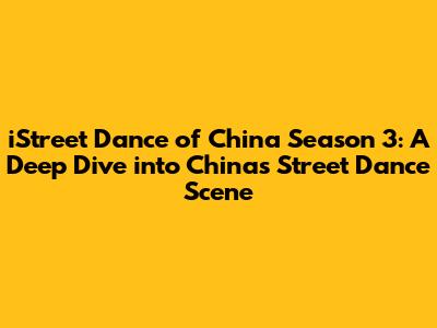 Hey everyone! Get ready to groove because we're diving headfirst into the electrifying world of iStreet Dance of China Season 3! For those unfamiliar, this show is a total game-changer for street dance in China. It's where the hottest dancers, the most creative choreographers, and the most intense battles collide. If you're a fan of dance, competition, or just pure entertainment, this is one show you absolutely cannot miss. This article is your ultimate guide, covering everything from the show's format to its most memorable moments, the key players, and why iStreet Dance of China is so important to the global dance community. Ready to bust a move and learn more? Let's get started!