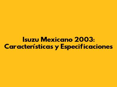 Isuzu Mexicano 2003: Características Y Especificaciones