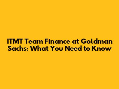 ITMT Team Finance At Goldman Sachs: What You Need To Know