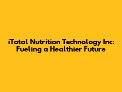 ITotal Nutrition Technology Inc: Fueling A Healthier Future