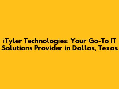 In the bustling metropolis of Dallas, Texas, where innovation and technology drive the economy, having a reliable IT solutions provider is not just a luxury, it's a necessity. That's where iTyler Technologies steps in, offering a comprehensive suite of services designed to keep your business running smoothly and efficiently. Whether you're a small startup or a large corporation, iTyler Technologies has the expertise and experience to meet your unique IT needs. Let's dive into what makes iTyler Technologies a standout choice for businesses in the Dallas area.