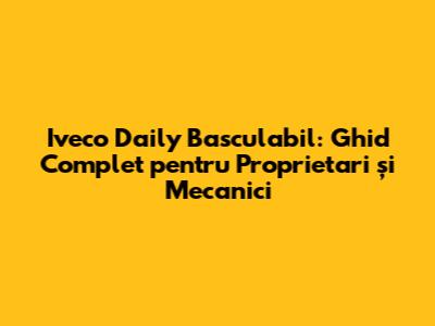 Bună, prieteni! Dacă sunteți posesori de Iveco Daily basculabil sau sunteți interesați de aceste utilitare robuste, atunci ați ajuns unde trebuie. În acest articol, vom explora totul despre Iveco Daily basculabil, de la caracteristicile sale tehnice și utilizări, până la cele mai bune practici de întreținere și, bineînțeles, soluții de reparații pentru a vă asigura că vehiculul dumneavoastră funcționează impecabil. Hai să ne scufundăm în lumea acestor camioane versatile și să descoperim secretele pentru a le menține în formă maximă!