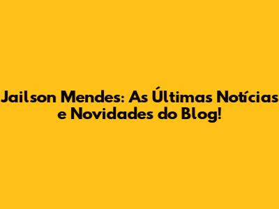 Jailson Mendes: As Últimas Notícias E Novidades Do Blog!