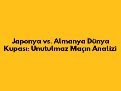 Selam millet! Futbol dünyasının kalbi, Dünya Kupası maçlarıyla her zaman heyecan fırtınası estirir. Özellikle Japonya ile Almanya arasındaki kapışma, futbolseverlere unutulmaz anlar yaşattı. Gelin, bu tarihi maçı mercek altına alalım ve neler olduğunu hep birlikte hatırlayalım.