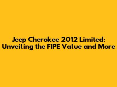 Hey guys! Are you curious about the Jeep Cherokee 2012 Limited and its FIPE value? You've come to the right place! This article dives deep into everything you need to know about this popular SUV, focusing on its FIPE value, what it means, and other essential aspects that make the 2012 Limited a compelling choice. We'll explore the features, specifications, and overall reliability of this vehicle, giving you a comprehensive understanding of its market position and value. Whether you're a potential buyer, current owner, or simply an automotive enthusiast, this guide will provide valuable insights into the Jeep Cherokee 2012 Limited. So buckle up and let's get started!