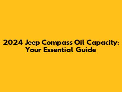 Hey there, Jeep enthusiasts! Today, we're diving deep into a topic that's super crucial for keeping your 2024 Jeep Compass running smoothly: the oil capacity. Understanding the correct oil capacity for your Compass is non-negotiable if you want to ensure your engine stays healthy and performs at its best. So, whether you're a seasoned mechanic or a first-time Jeep owner, this guide will provide you with all the essential information you need. We'll cover the exact oil capacity, the recommended oil type, and some handy tips to make your oil changes a breeze. Let's get started, shall we?