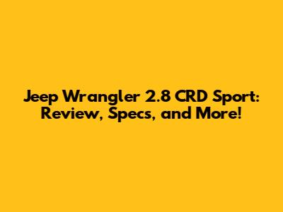 Hey guys! Today, we're diving deep into the Jeep Wrangler 2.8 CRD Sport. This beast is a favorite for off-road enthusiasts and those who love a rugged, adventurous ride. We'll cover everything from its performance and specs to its pros and cons, ensuring you have all the info you need. So, buckle up and let’s get started!