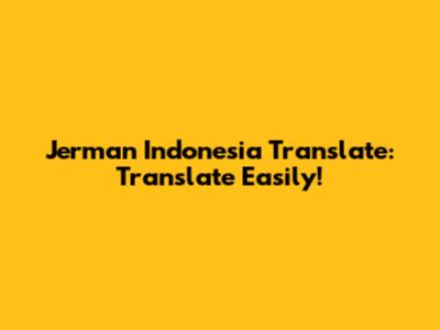Jerman Indonesia Translate: Translate Easily!