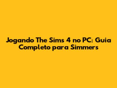 Jogando The Sims 4 No PC: Guia Completo Para Simmers