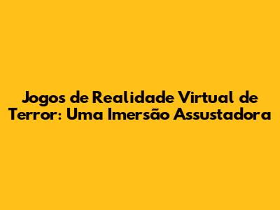 Jogos De Realidade Virtual De Terror: Uma Imersão Assustadora