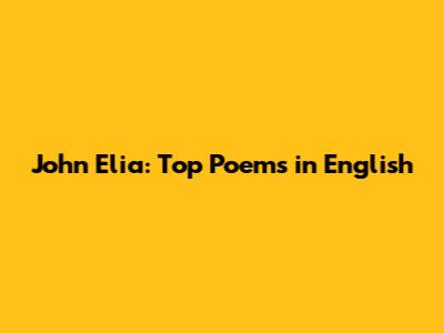 John Elia: Top Poems In English