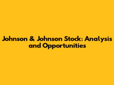Johnson & Johnson Stock: Analysis And Opportunities