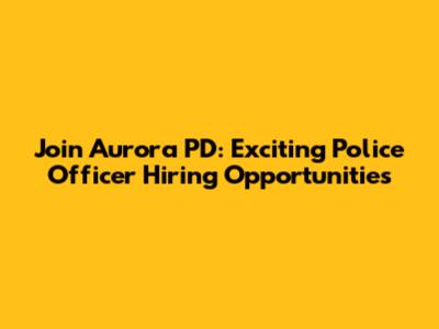 Join Aurora PD: Exciting Police Officer Hiring Opportunities