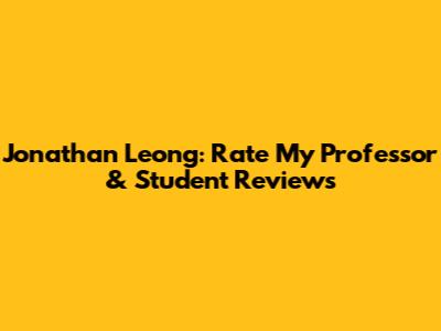 Jonathan Leong: Rate My Professor & Student Reviews
