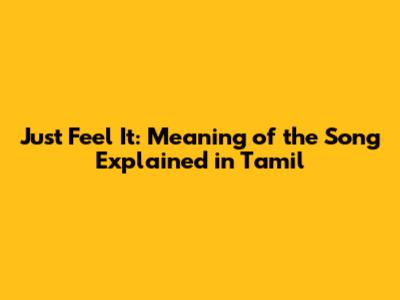Just Feel It: Meaning Of The Song Explained In Tamil