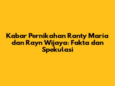 Untuk mendapatkan informasi yang akurat mengenai hubungan Ranty Maria dan Rayn Wijaya, sebaiknya kita merujuk pada sumber-sumber yang terpercaya. Misalnya, pernyataan resmi dari pihak manajemen mereka, atau dari akun media sosial resmi mereka. Hindari mempercayai berita-berita yang tidak jelas sumbernya, karena bisa jadi informasi tersebut tidak benar atau hanya bersifat spekulasi.