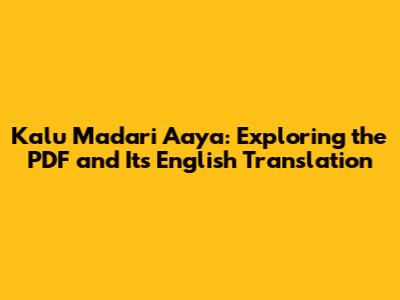 Kalu Madari Aaya: Unveiling The PDF And Its English Translation