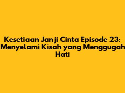 Hai guys! Gimana kabarnya? Pasti udah gak sabar kan buat ngulik Kesetiaan Janji Cinta episode 23? Well, kalian tepat banget mampir ke sini karena kita bakal bedah habis-habisan episode terbaru ini. Mulai dari sinopsis, alur cerita, sampai review singkat tentang apa aja yang bikin episode ini jadi seru. Jangan khawatir, kita bakal bahas secara santai dan mudah dipahami, jadi siapapun bisa ikut nimbrung. Penasaran kan gimana kelanjutan kisah cinta yang penuh lika-liku ini? Yuk, langsung aja kita mulai!