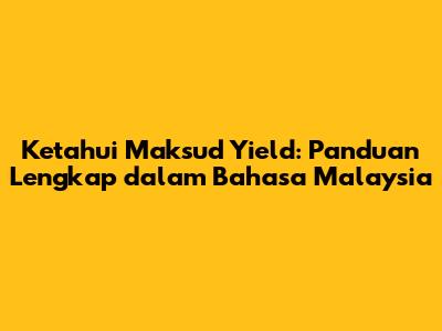 Ketahui Maksud Yield: Panduan Lengkap Dalam Bahasa Malaysia