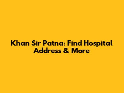 Khan Sir Patna: Find Hospital Address & More