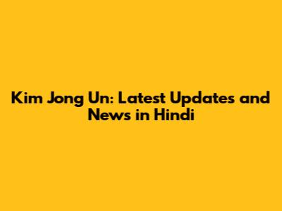 Kim Jong Un: Latest Updates And News In Hindi