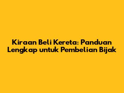 Kiraan Beli Kereta: Panduan Lengkap Untuk Pembelian Bijak