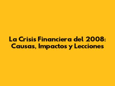 La Crisis Financiera Del 2008: Causas, Impactos Y Lecciones