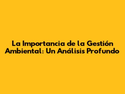 La Importancia De La Gestión Ambiental: Un Análisis Profundo