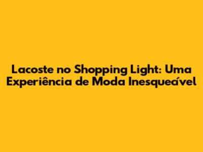 Além de visitar a Lacoste, o Shopping Light oferece diversas outras opções de lazer e compras. Aproveite para conhecer outras lojas, restaurantes e lanchonetes. O shopping também costuma ter eventos culturais e exposições. Vale a pena dar uma olhada na programação para aproveitar ao máximo sua visita.