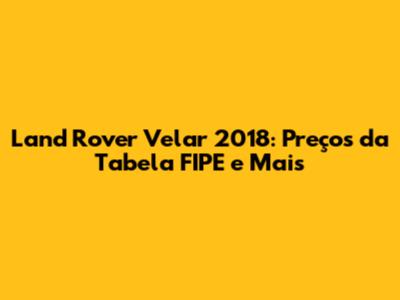 Land Rover Velar 2018: Preços Da Tabela FIPE E Mais