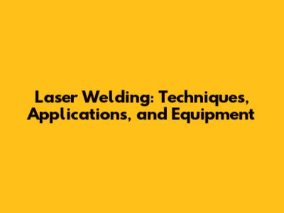 Laser Welding: Techniques, Applications, And Equipment