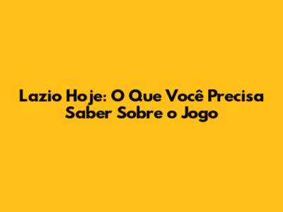 Lazio Hoje: O Que Você Precisa Saber Sobre O Jogo