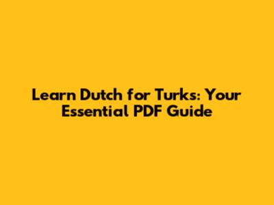 Learn Dutch For Turks: Essential PDF Guide
