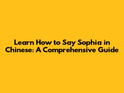 Learn How To Say 'Sophia' In Chinese: A Complete Guide