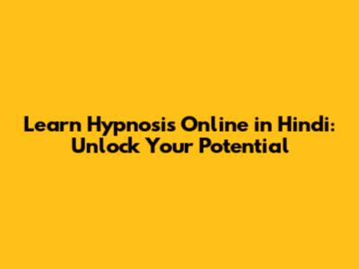 Learn Hypnosis Online In Hindi