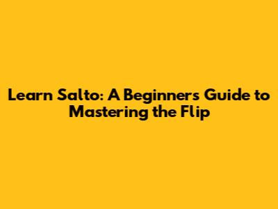 Learn Salto: A Beginner's Guide To Mastering The Flip