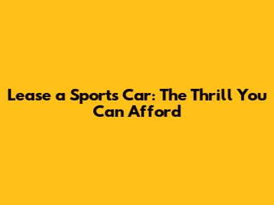 Lease A Sports Car: The Thrill You Can Afford