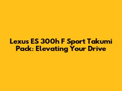 Hey car enthusiasts! Today, we're diving deep into something seriously special: the Lexus ES 300h F Sport Takumi Pack. If you're into luxury sedans that blend performance, comfort, and cutting-edge tech, then buckle up, because this is the ride for you. We're not just talking about a car here, guys; we're talking about an experience. The Takumi Pack is essentially Lexus taking the already impressive ES 300h F Sport and dialing it up to eleven, focusing on the finer details that make a real difference to the driving dynamics and overall feel. It’s for those who appreciate the subtle nuances, the ones who can feel the difference a precisely tuned suspension makes or the impact of premium interior materials. This isn't just about getting from A to B; it's about enjoying every single mile in between. We'll explore what makes this particular trim stand out, the enhancements it brings, and why it might just be the perfect executive sedan for discerning drivers who refuse to compromise.