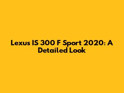 Lexus IS 300 F Sport 2020: A Detailed Look