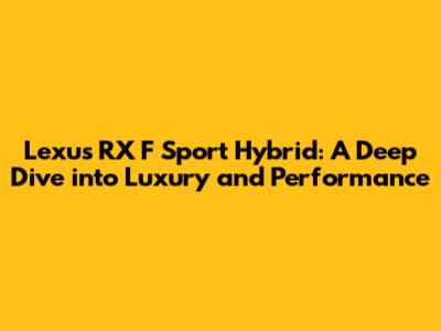 Lexus RX F Sport Hybrid: Review, Specs, And Performance