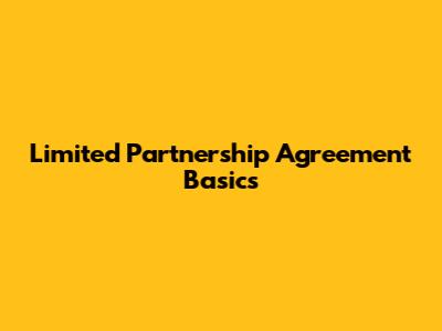Limited Partnership Agreement Basics