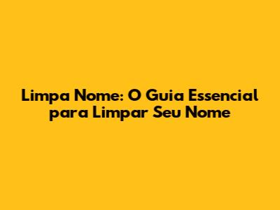 Limpa Nome: O Guia Essencial Para Limpar Seu Nome