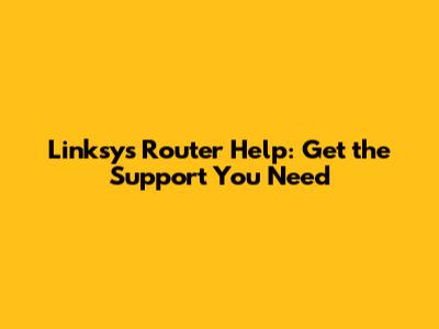 Linksys Router Help: Get The Support You Need