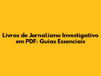 Livros De Jornalismo Investigativo Em PDF: Guias Essenciais