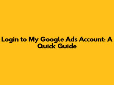 Login To My Google Ads Account: A Quick Guide