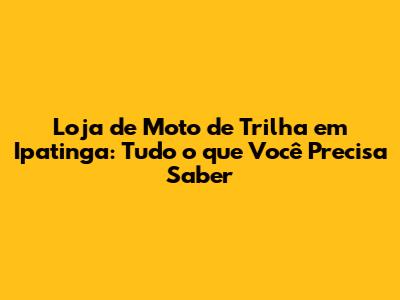 Loja De Moto De Trilha Em Ipatinga: Guia Completo
