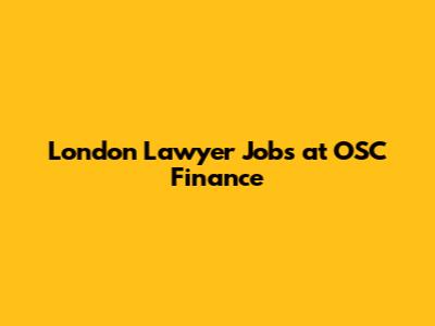 London Lawyer Jobs At OSC Finance